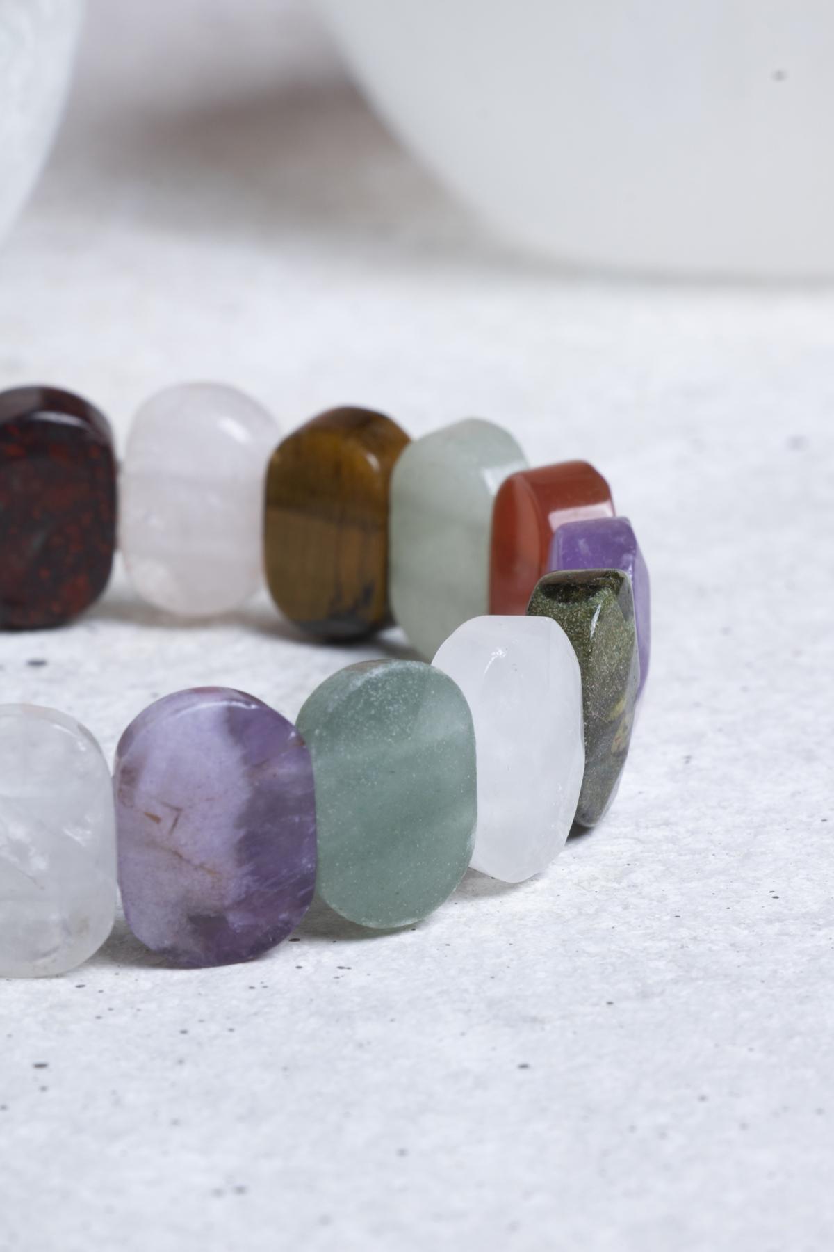 Modern ve şık bir tasarıma sahip olan Çakra Roleks Bileklik, günlük kullanım için idealdir. Geniş yapısı sayesinde bileği sarmakta ve rahat bir kullanım sunmaktadır. Her bir doğal taşın benzersiz rengi ve dokusu, bilekliğinizi hem kişisel bir ifade aracı hem de stilinize zarif bir dokunuş katan bir aksesuar haline getirir.