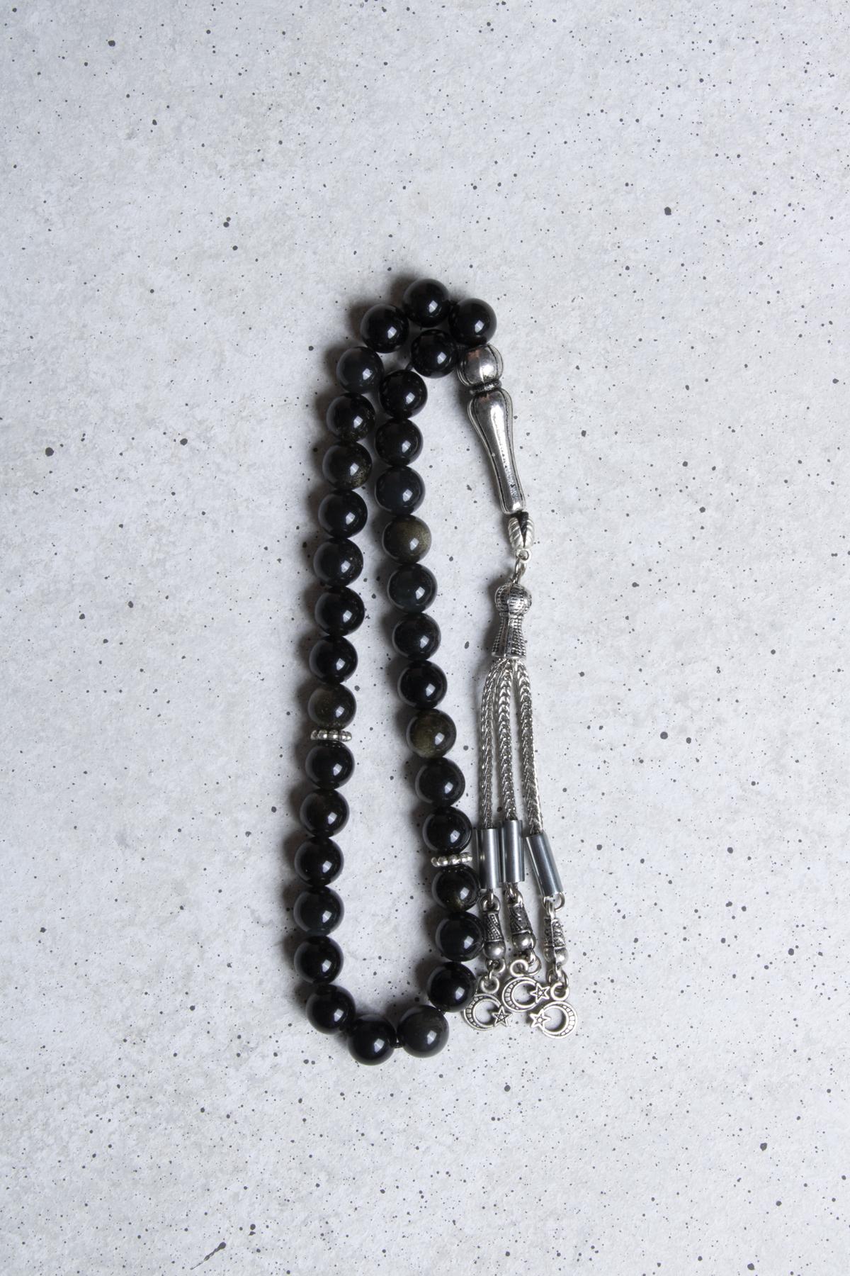 Golden Obsidyen, doğanın en büyüleyici taşlarından biridir. Bu eşsiz tesbih, 8 mm çapında 33 adet taşla bir araya getirilmiştir. Doğal taşların sağladığı enerjiyi ve içsel huzuru bir arada sunan bu tesbih, yüksek kaliteli işçilikle üretilmiştir. Her bir tanesi özenle seçilmiş ve ustalıkla işlenmiştir.