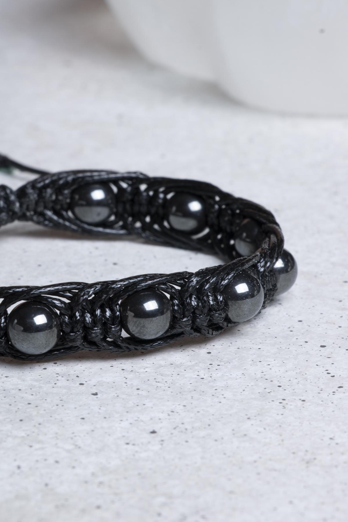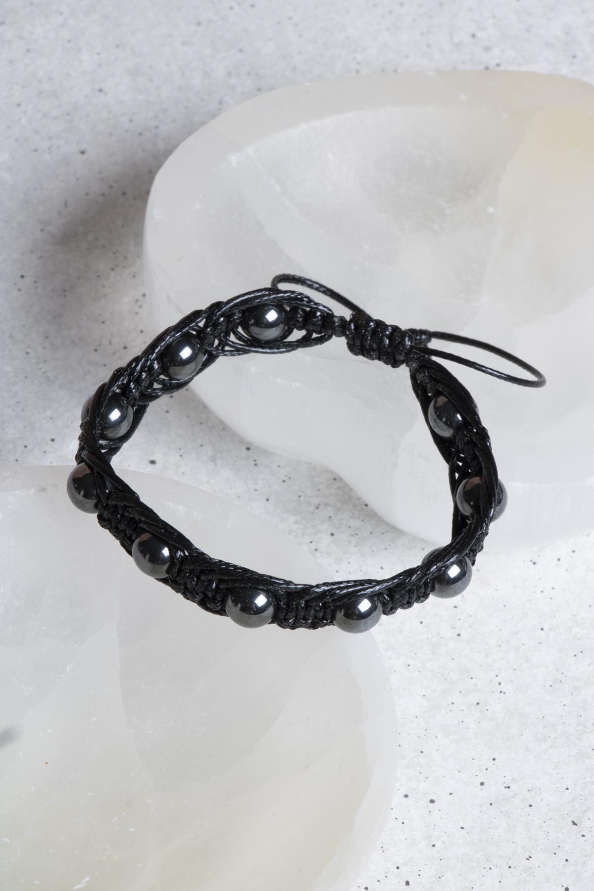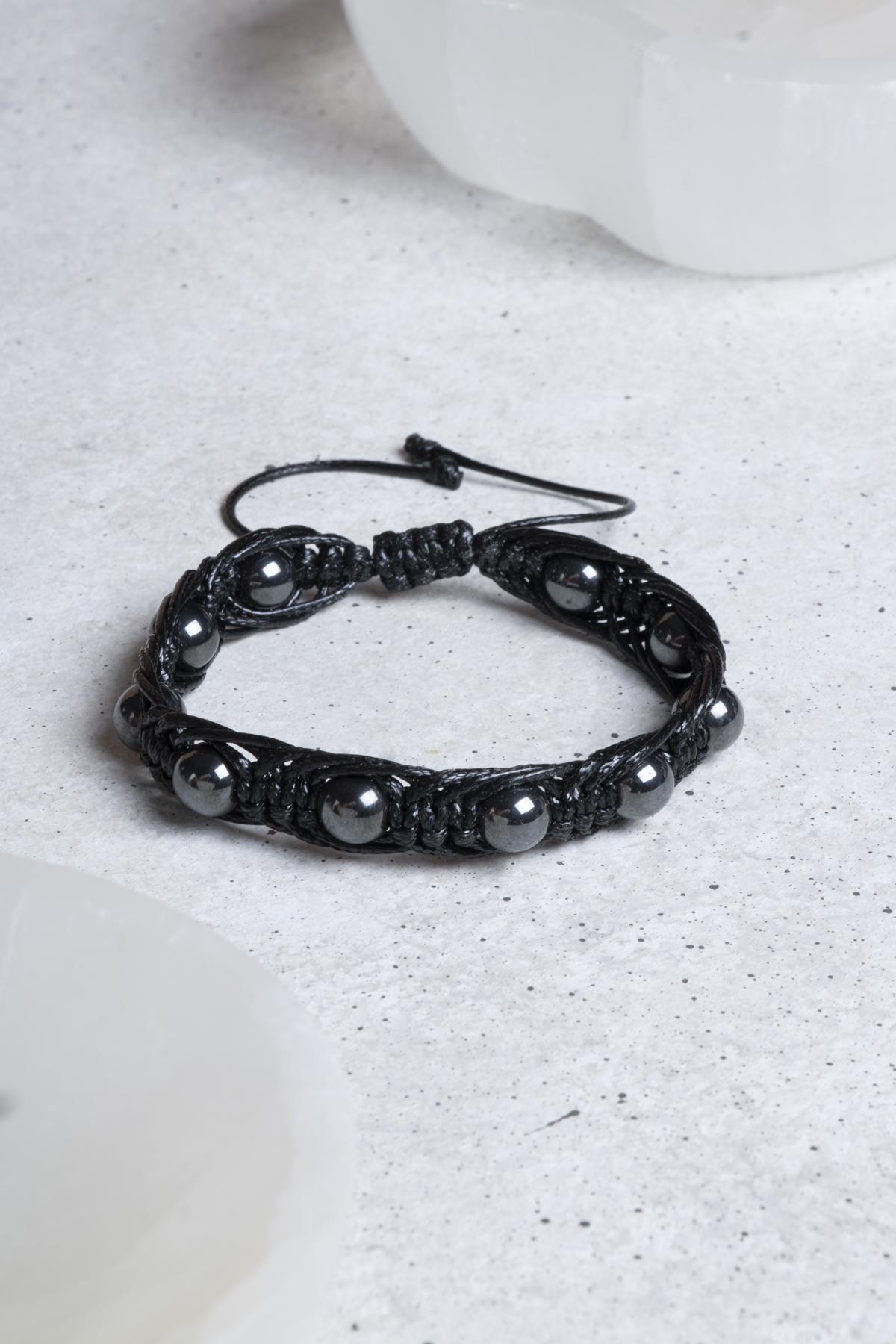 Bu özel bileklik, 8 mm boyutundaki hematit taşlarının özenle dizilmesiyle oluşturulmuştur. Deri iplik, bileği rahatça sararak mükemmel bir uyum sağlar. Modern ve şık tasarımı ile her tarza uyum sağlarken, aynı zamanda konforlu bir kullanım sunar. Uzun ömürlü yapısı sayesinde, bu bileklik günlük hayatınızın vazgeçilmez bir parçası haline gelecek.