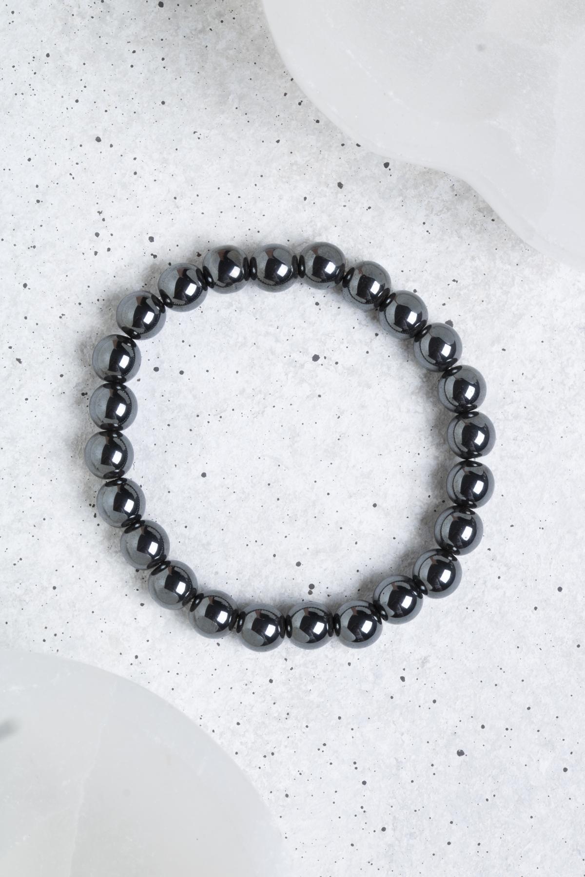 Hematit 8 mm Sertifikalı Doğaltaş Bileklik